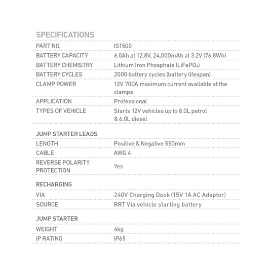 Vendor:IS1500Jump Starter, Projecta, Lithium Intelli-Start, 12v, 1500a - EachRegular price $731.50 (+10% GST)Regular priceUnit price / per-