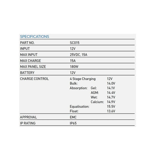Solar Charge Controller, Projecta, 4 Stage Automatic, 12v, 15a - Each