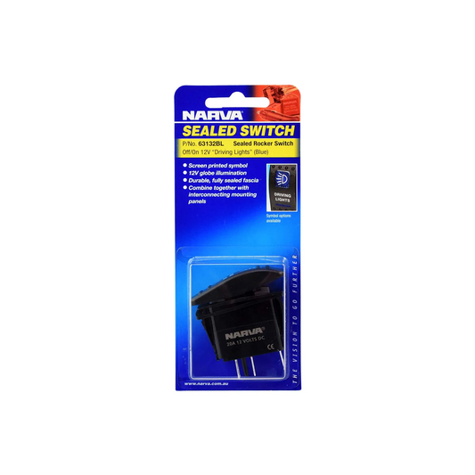 Switch, Narva, Illuminated Sealed Rocker Off/On, 'Driving Lights' Symbol, 12v, Blue - Each