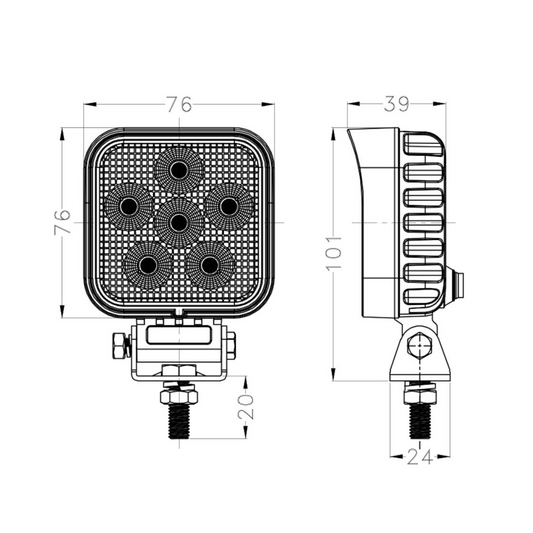Work Lamp, Mad Goose, LED, Flood Beam, IP67, 24w, 76 x 76mm - Each