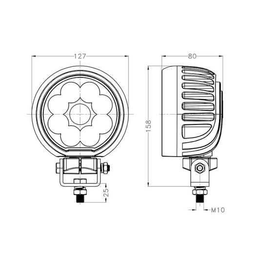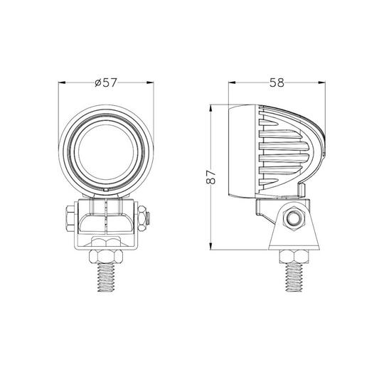 Work Lamp, Mad Goose, Round, Spot Beam, Deutsch Connector, 9-32v, 10w - Each
