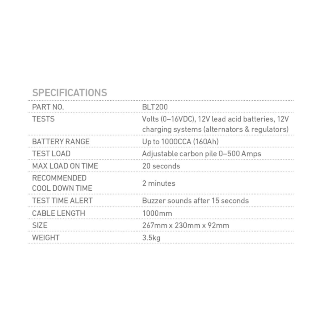 Carbon Pile Load Tester, Projecta, 12v, 500a - Each