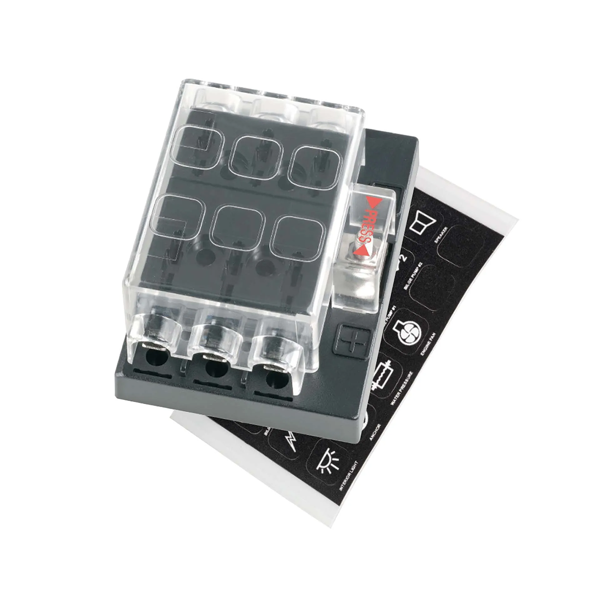 Circuit Breaker Block, Narva, 6 Way Standard Blade Fuse, With Cover - Each