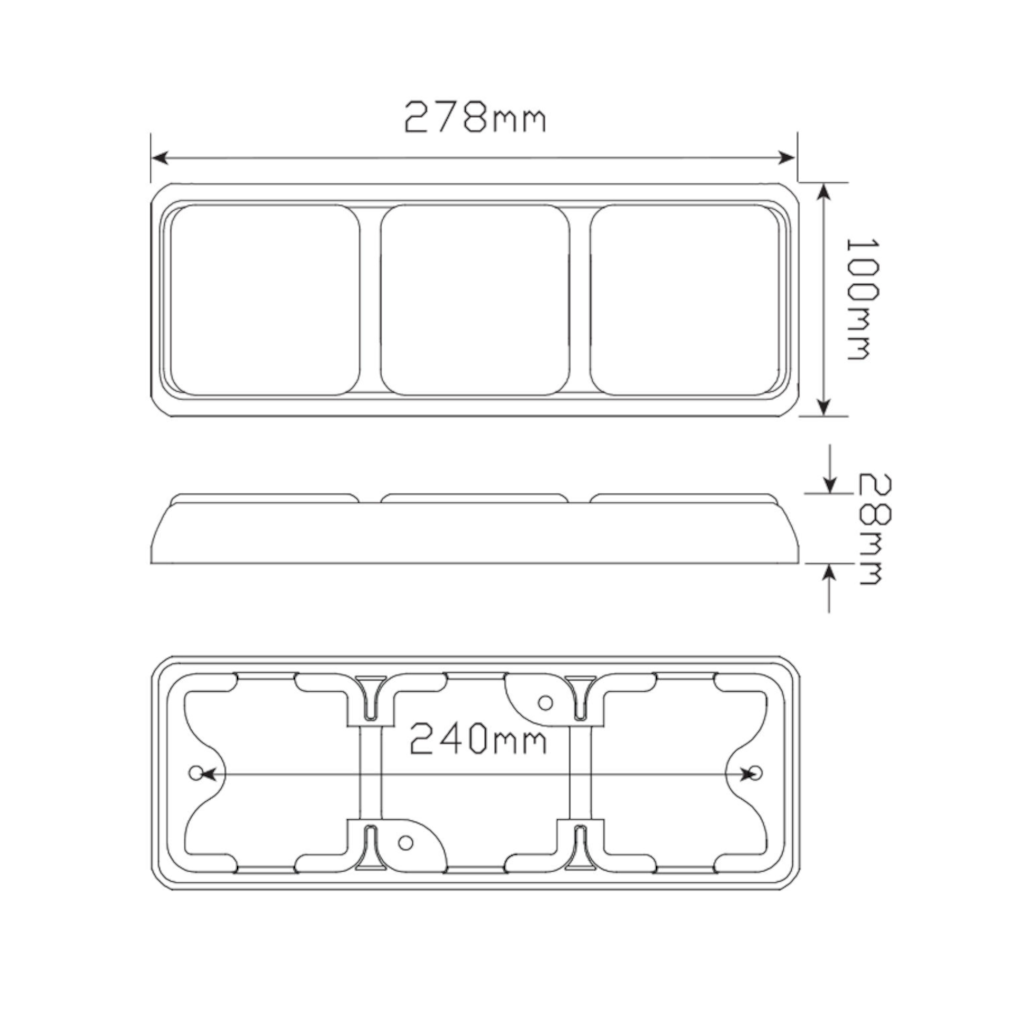 Combination Lamp, LED Autolamps, 80 Triple Series, LED, Stop/Tail/Indicator/Reverse, Red/Amber/White, 12-24v - Each