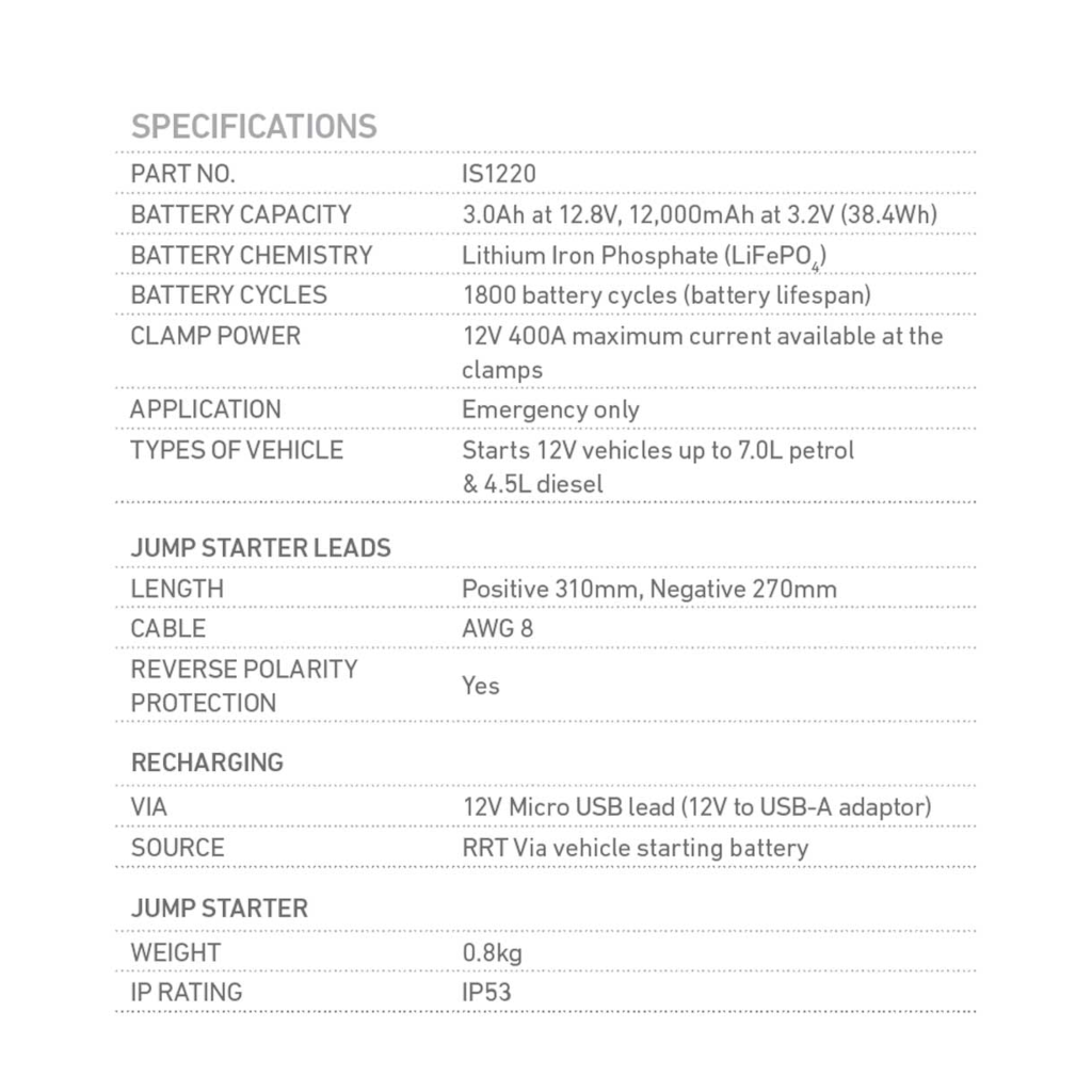 Jump Starter, Projecta, Lithium Intelli-Start, 12v, 1200a - Each