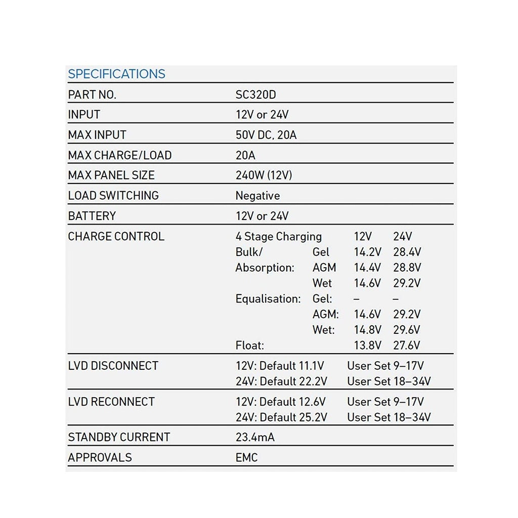 The ideal controller to suit panels producing up to 20A, often found in caravans. The sophisticated remote control provides total user control and advanced operation and allows the user to set a tailored charging profile and monitor battery and charging status.