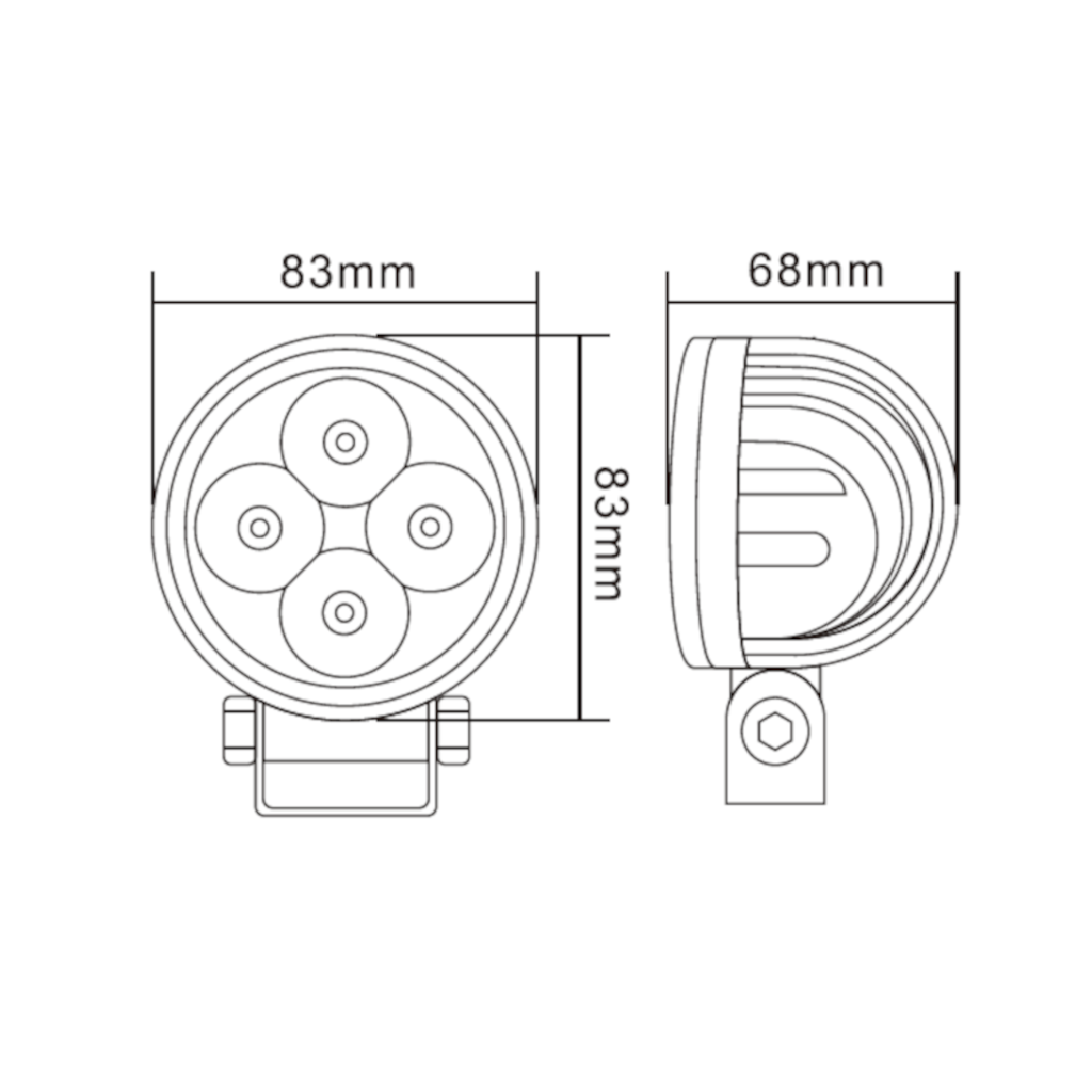 Work Lamp, Mad Goose, LED Spot Beam IP67, 9-32v, 12w, 3.3" - Each